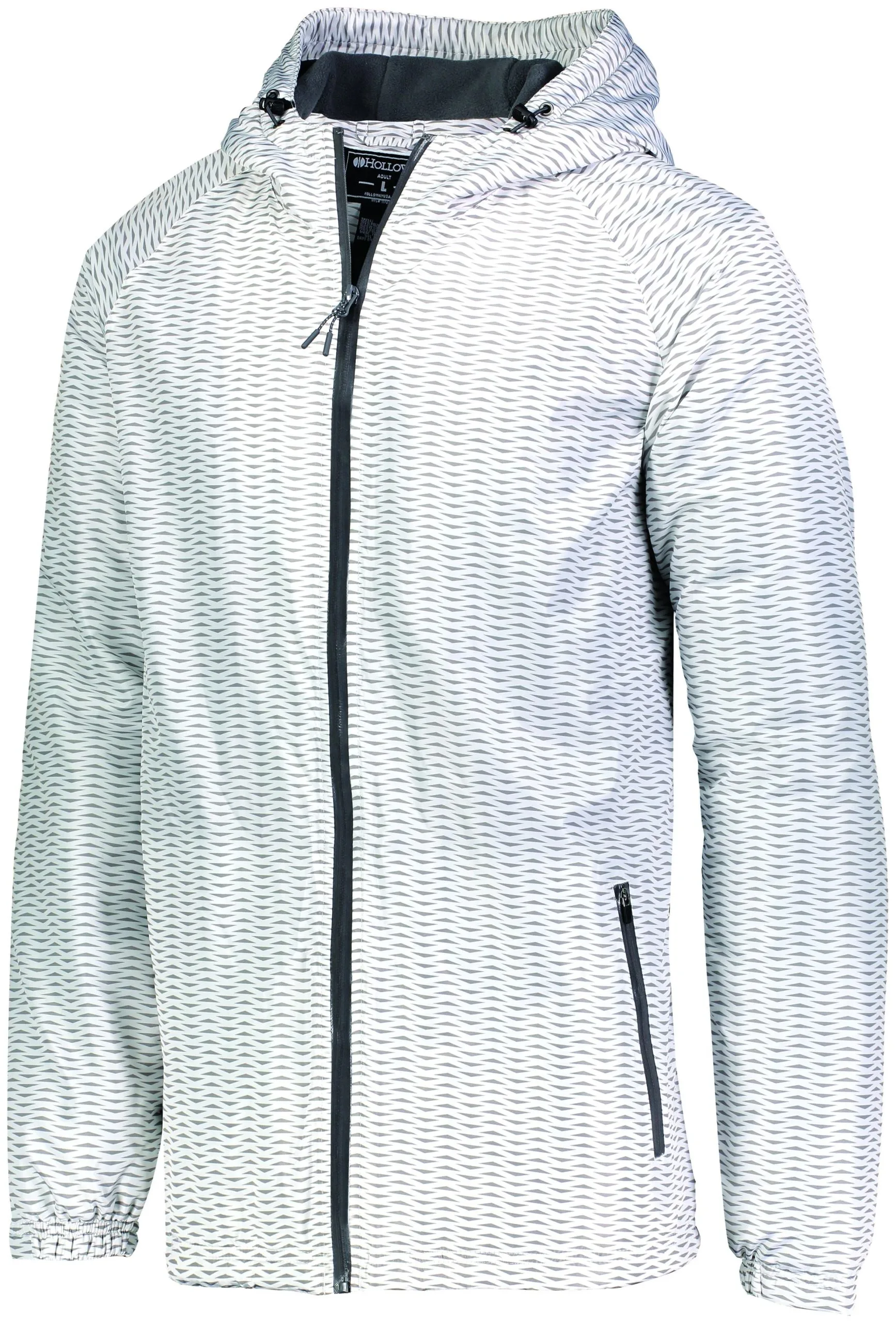 Tech weave printed Micron⢠lightweight polyester * Omni-Sof⢠microfleece lined body and hood * Taffeta lined sleeves * Woven label * Shiny coated front zipper with reflective zipper pull and matte tips * Adjustable 3-piece hood with eyelets and concealed cord locks on Adult sizes only (elastic on youth) * Raglan sleeves for maximum mobility * Shiny coated front pockets with black pull cord * Interior all access decoration zipper * Inside zippered valuables pocket * Half-elastic cuffs * Open bottom with adjustable elastic hidden drawcord on Adult sizes only * Dropped tail * Water-resistant
