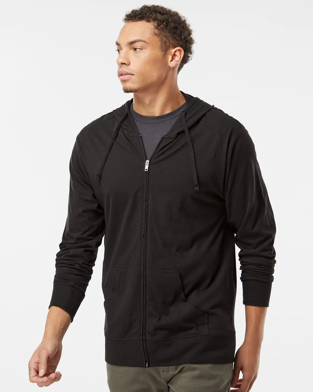 Independent Trading Co. Men’s Lightweight Jersey Full-Zip Hooded T-Shirt