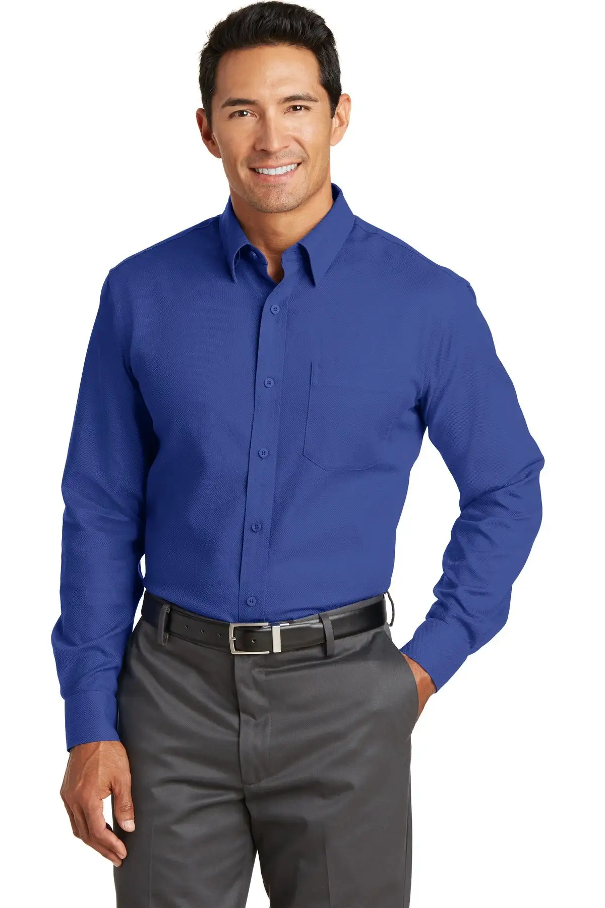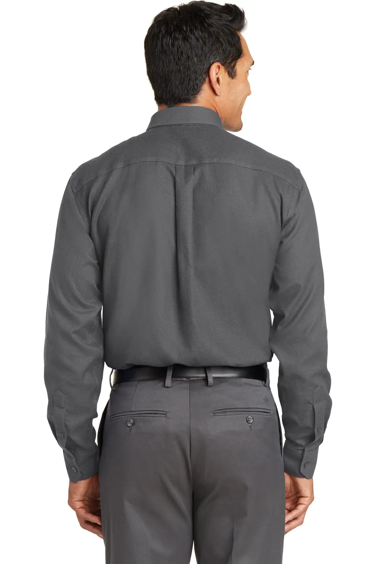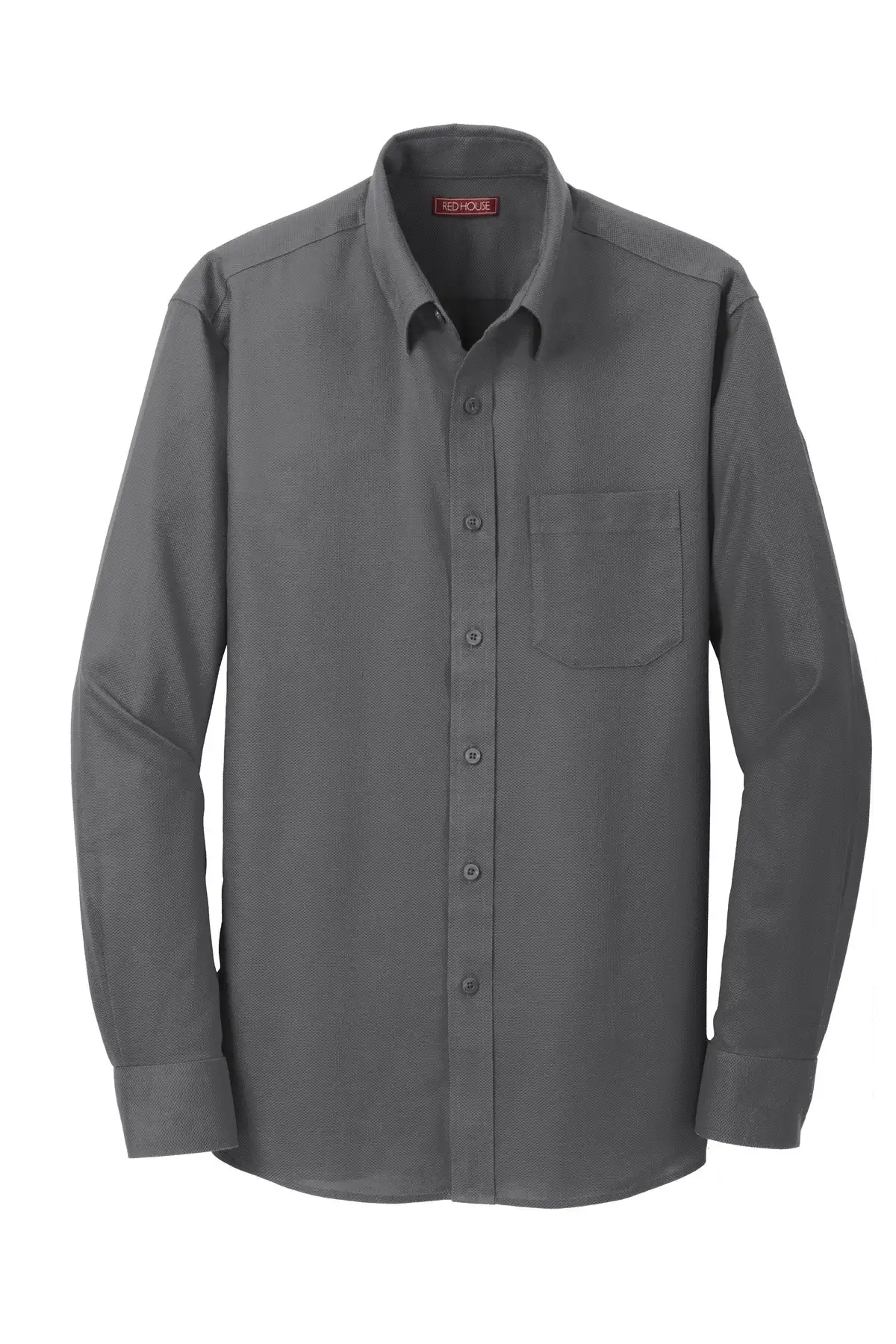 Enjoy more work with less ironing with our dobby shirt. This yarn-dyed 3.9-ounce, 100% cotton shirt has a refined diamond texture that stays crisp without ironing. Free from wrinkles and soft, it features pucker-free taped seams and mitered adjustable cuffs. Versatile collar that can be worn open or buttoned down. Left chest pocket and back box pleat. Red House engraved buttons and monogram on right sleeve placket.
