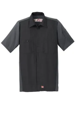 Around the garage there isn’t a better more durable crew shirt. Tested through 50 industrial launderer washes this moisture-wicking shirt has a stain-release finish and dark colorblocking on the body to hide stains oil and grime. 4.25-ounce 65/35 poly/cotton ripstop Touchtex technology for superior color retention stain release and wickability Open collar with sewn-in stays Concealed no-scratch button placket protects auto finish Button-through right chest pocket Left chest pocket with double pencil stall Utility pocket on left sleeve Straight hem to be worn tucked in or out