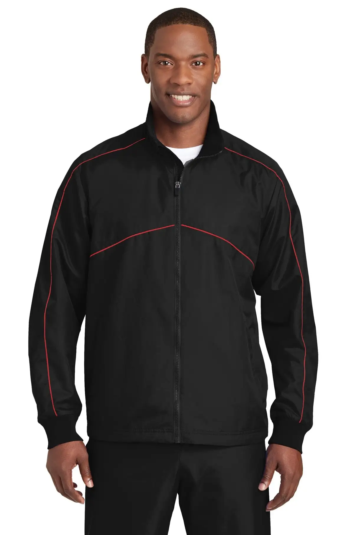Shield yourself from the elements in this water-repellent, wind-resistant jacket. Contrast piping gives it an athletic look, while back vents allow for quick ventilation and easy decoration.