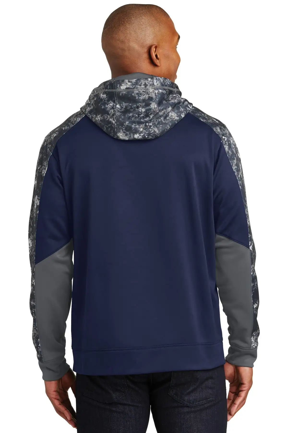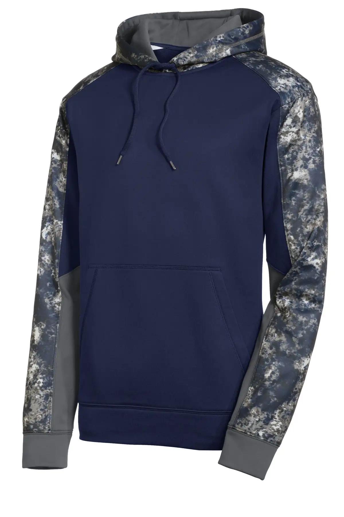 The granite-like Mineral Freeze print is strategically placed along with two solid team colors in this pullover that wicks moisture.
